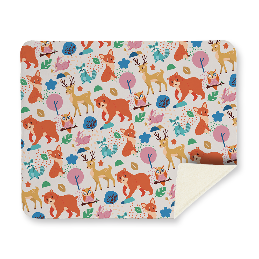 You can print almost anything on your Colorful Forest Animals Pattern Sherpa Blanket! Upload photos, customize one of our templates or create your own design from scratch. We do have restrictions around certain graphics that would be considered profane or hateful, and we are not able to print any trademarks or intellectual property that you do not control (sorry, no NFL logos), but other than those limited exceptions, the canvas is all yours!
